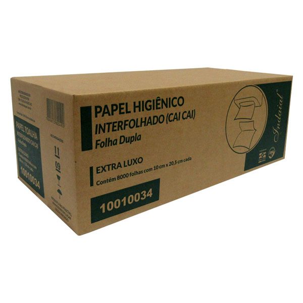 Características: Papel Higiênico Interfolhado, produzido com Fibras Celulósicas Virgem. Gramatura: 14-16g/m².