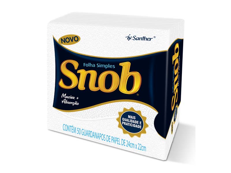 Características: Praticidade é o sinônimo da versão SNOB folha simples. Exibe qualidade e alta performance, combinando maciez e absorção. É um guardanapo para o dia a dia, perfeito para o café da manhã ou para almoços com a família e os amigos. Snob é folha simples de alta qualidade, disponível em dois diferentes tamanhos: pequeno e grande.