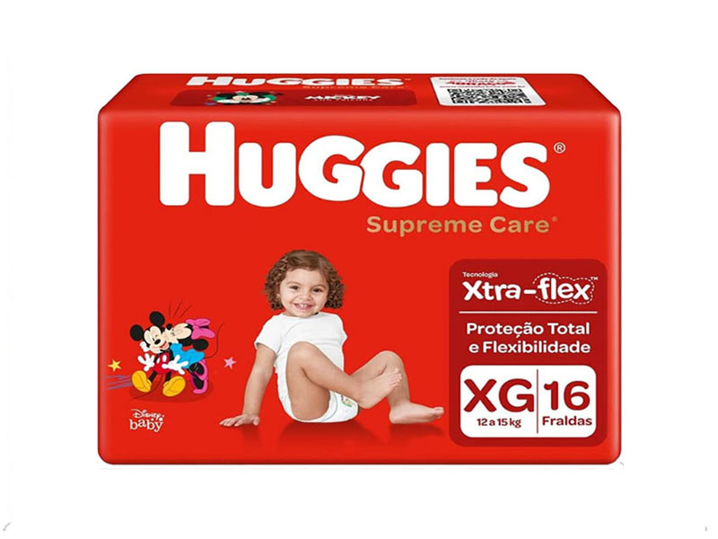 Características: Huggies Supreme Care conta com a exclusiva tecnologia Xtra-Flex que mantém a fralda ajustada e flexível mesmo quando o bebê estiver em movimento.